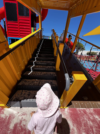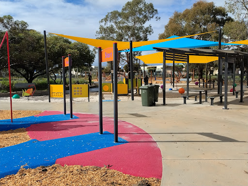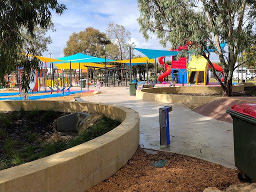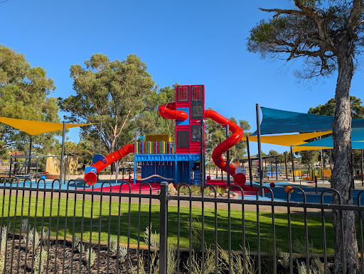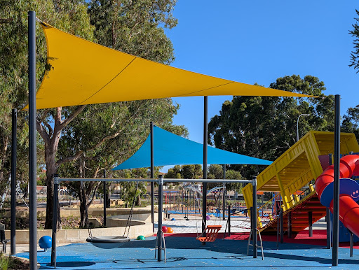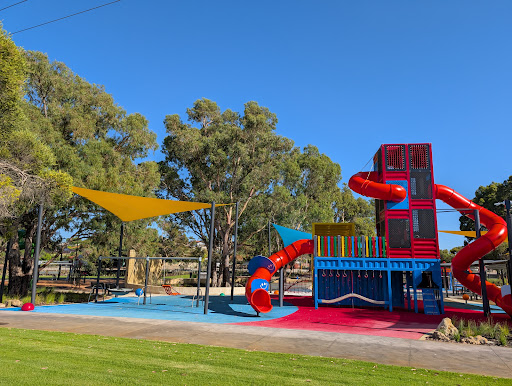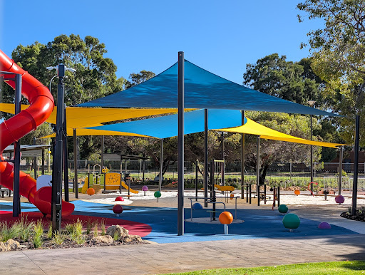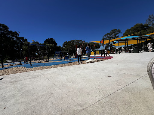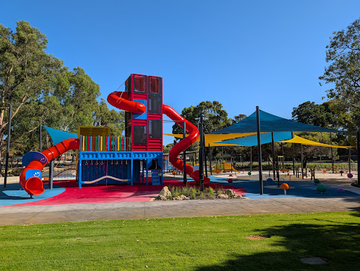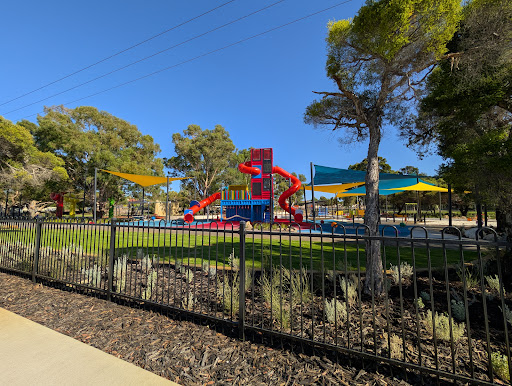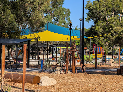Ballajura Intergenerational Playspace is a highly recommended destination for families, offering a huge variety of play equipment designed for all ages and abilities. The fully gated playground features a prominent central climbing structure, a sand pit, various swings, a climbing wall, an agility course, and a nature play area, ensuring hours of entertainment. With plenty of shade from sails and trees, undercover picnic shelters with tables, BBQs, water fountains, and nearby restrooms, it’s well-equipped for a comfortable day out. The presence of lights and security cameras adds to the sense of safety, making it an ideal spot for both casual visits and special events.
