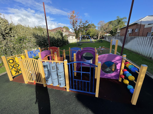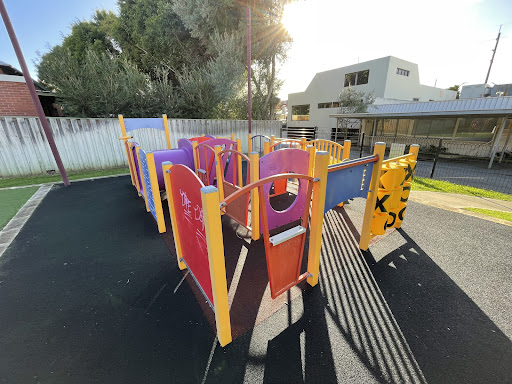 A charming, small, and brightly colored sensory playground, this spot is perfect for toddlers. It’s nicely shaded and equipped with a swing set and picnic bench, offering a pleasant and safe play environment.