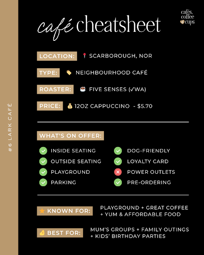 Lark is a gem for families, offering a wonderful combination of a charming nature play playground and a well-equipped indoor play area. Parents appreciate the delicious, affordable food and coffee, and the friendly, accommodating staff. It’s an ideal spot for family outings, coffee dates, or even birthday parties, providing a safe and engaging environment for children of various ages.