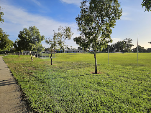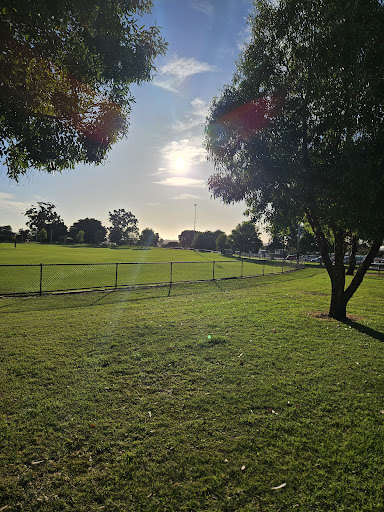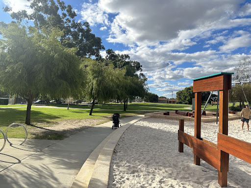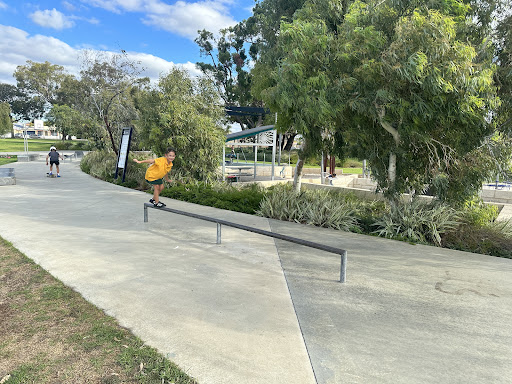 Robinson Reserve is a beautifully upgraded and well-kept park featuring a fully fenced playground and grass area, providing a secure environment for families. It offers a wide range of activities for all ages, including “usual park equipment” with sand, mini skate ramps for bikes and skateboards, and a basketball area. The reserve also boasts BBQ facilities, clean toilets, and paved paths perfect for walking and scootering, all surrounded by lovely green grass and shade trees.