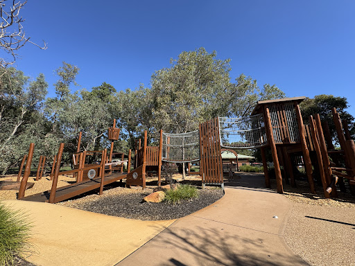 Pia’s Place All Abilities Playspace is a highly recommended destination for families, offering an inclusive and exciting experience for children of all ages. The playground is praised for its secure, well-designed, and kid-friendly environment with ample space to explore safely. It features interactive activities, large climbing structures, slides, and a zipline suitable even for toddlers. Families can enjoy the picnic shelters with tables and BBQ facilities, clean restrooms, and nearby amenities like a coffee kiosk and train station, making it an ideal spot for birthday parties and family days out amidst a beautiful natural backdrop.