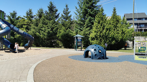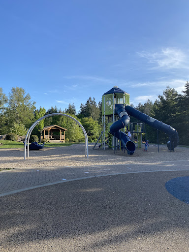 Westhills Playground is a fantastic park featuring unique and diverse play structures thoughtfully designed for various age groups, with dedicated areas for younger kids (up to 5) and older children (5-12). It offers numerous slides, climbing structures, a merry-go-round, and swings, providing abundant entertainment. The park is beautifully landscaped, clean, and often less crowded, complemented by a large open grass field and a gazebo, making it an excellent destination for family outings.