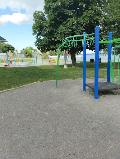 Playground of Angels boasts a new, modern play structure featuring multiple entry points and slides, all supported by a safe fall surface. Ideal for children aged 2 and above, the playground is further enhanced by ample shade from mature trees. Its prime location offers easy access to a sandy beach and a refreshing splash pad, complemented by convenient free parking and available washrooms, making it a fantastic destination for families.