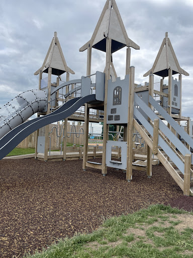This is a lovely, new, and modern playground offering ample space for seating on the grass, making it ideal for picnics. A walking path is available, which is great for kids on scooters.