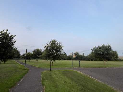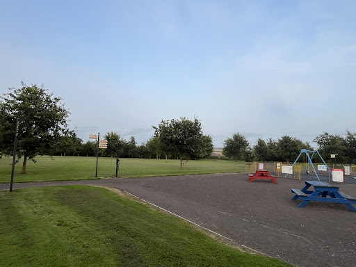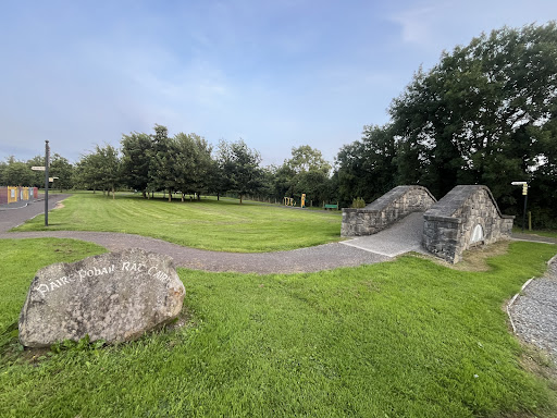 Páirc Ráth Chairn is a brilliant and safe park that offers a great space for children to play and adults to exercise. It features well-maintained pathways, gym equipment, and a walking track around the perimeter. The park also includes historical elements like scattered artifacts and an old railway bridge, making it an engaging spot for families.