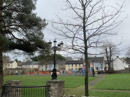 This is a lovely, safe, and well-maintained playground located in the town center, offering a delightful experience for children. It features a good mix of play equipment, including swings, climbing structures, and a zip wire, catering to various age groups. The park also boasts a nice wall with pleasant views, a big green area for running around, and charming fairy doors on the trees that add a whimsical touch to the play area. Families can enjoy the presence of picnic benches, making it a great spot for an afternoon outing.