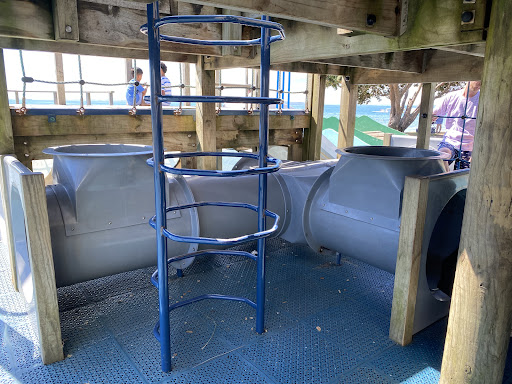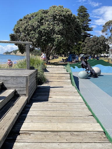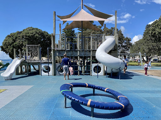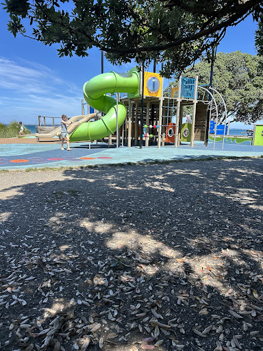 Browns Bay Playground is a fantastic destination located right on the beautiful beachfront, offering an amazing setting for family fun. Recently rebuilt and renovated, it now boasts improved safety features and a vibrant, colorful appearance with a soft mat surface. The playground provides a great range of equipment, including swings, slides, and climbing frames, catering to both younger and older children. Its prime location near cafes, eateries, and a skate park, combined with the option to enjoy the beach, makes it a cherished spot for the community.