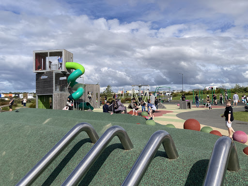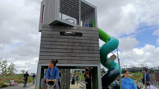 Kopupaka Playground is a large, versatile park offering an abundance of engaging activities for children aged 1-9 years, including swings, slides, a zip line, climbing structures, and a popular water play area. Families appreciate the excellent amenities such as clean washroom facilities, available drinking water, and a covered BBQ area, making it ideal for extended visits. The playground also features an outdoor gym for adults and boasts a scenic lake view, providing a comprehensive recreational experience for the whole family. Its convenience to Costco is an added bonus for many visitors.