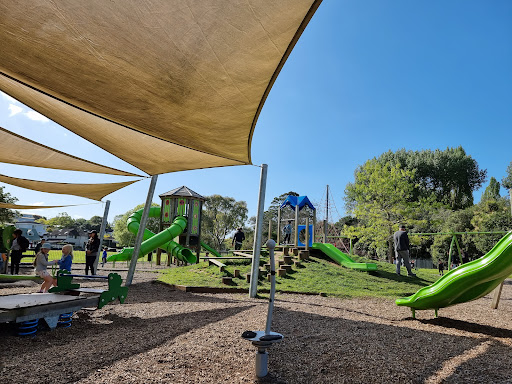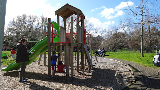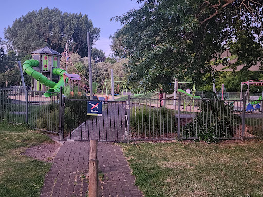 This is a beautiful and safe playground, highly recommended for children of all ages. It is well-maintained with a fenced area, providing a secure environment for play. Ample benches are available for parents, and a large field next to the playground is perfect for activities like soccer.