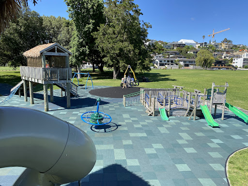 Orakei Playground, also known as Okahu Bay Playground, is an excellent destination for a family day out, boasting a fantastic location directly across from Okahu Bay Beach. The playground offers a variety of play equipment, including slides, swings, a flying fox, and climbing structures, with a dedicated area for babies and smaller children, ensuring fun for all ages. Visitors benefit from abundant shade provided by large trees and awnings, soft mat fall protection, clean public restrooms, picnic tables, BBQ facilities, and ample free parking, creating a comfortable and secure environment for extended play and relaxation.