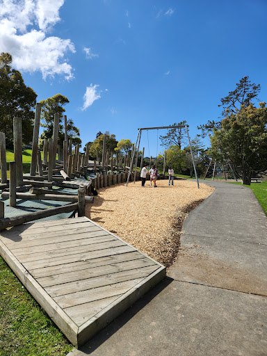 Sherwood Playground is a highly-rated, massive outdoor space that offers a great variety of equipment, including a cool mini obstacle course and even adult-sized swings, ensuring fun for the whole family. It boasts a beautiful setting with ample open ground perfect for running loops and enjoying wildlife. Families appreciate the plenty of parking available and the convenience of a dairy and takeaway just meters away for refreshments and treats.