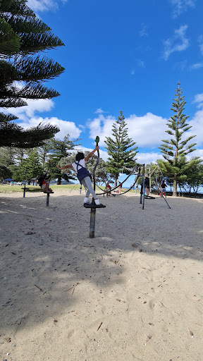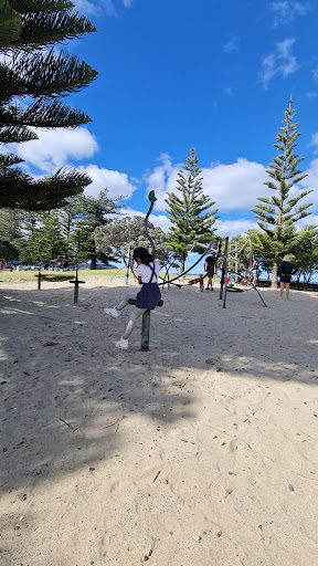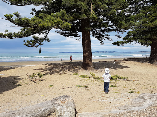 Orewa Reserve is a highly recommended, expansive park situated by a beautiful beach, offering a fantastic setting for families. The playground is well-equipped with various groups of equipment, including tunnel slides and numerous swings. Visitors benefit from amenities like public toilets, picnic tables, and ample shade from trees, alongside access to walking paths, a basketball court, and nearby food options, ensuring a full day of enjoyment.