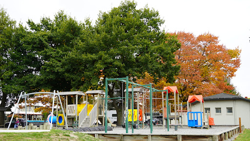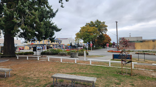 The Village Green Playground is a pleasant and spacious park ideal for family outings and children’s activities. It features a converted train carriage that adds a unique visual element and is conveniently located near public restrooms and a skate park. The large grassy area and nearby seating under trees provide ample space for relaxation and play.