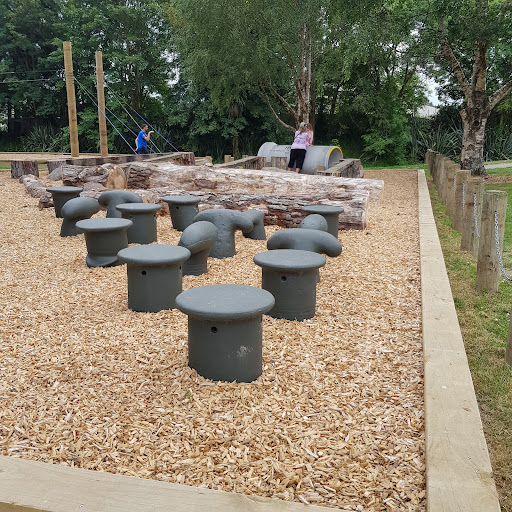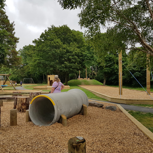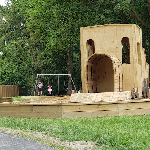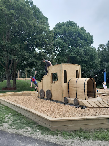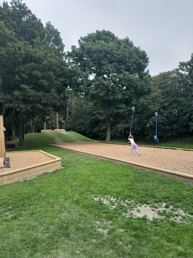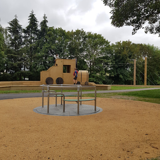 This playground offers a fantastic adventure for families, highlighted by its impressive double flying fox and accessible features like the roundabout, train, and picnic tables. With new swings installed and a fort to explore, kids of all ages, including those in wheelchairs, will find plenty to enjoy. Ample seating around the trees provides comfortable spots for parents to relax while children play.