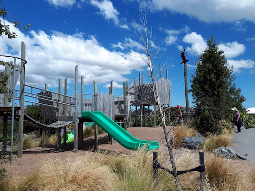 Falcon’s Landing Park is a pleasant playground featuring good slides, swings, and a fort structure. It also offers the added bonus of a tennis court and a scooter track for active play. The park provides good seating options and open grassy areas for families to enjoy.