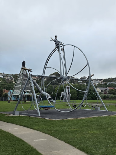 This steampunk-themed playground is a standout attraction, featuring incredibly creative and visually fascinating sculptures and play elements. Highlights include a pirate ship, a zipline, and a giant hamster wheel, offering a unique and engaging experience for children of all ages. With nearby amenities like coffee spots and ice cream trucks, it’s a perfect, well-maintained destination for families.