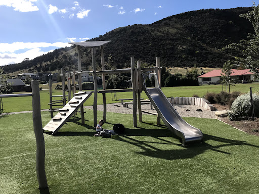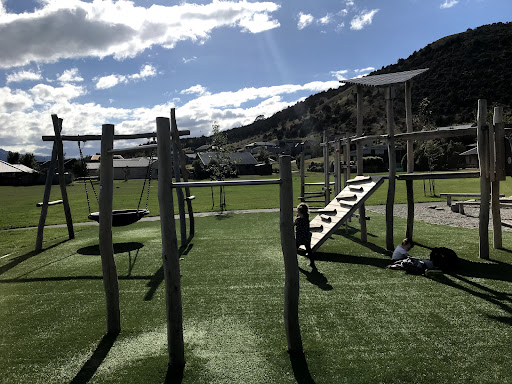 Allenby Park Playground is a well-equipped and attractive new park featuring a soft artificial turf surface that is comfortable for children. It offers a variety of climbing opportunities, including a wall area and balancing logs, along with a slide, making it engaging for younger visitors. The playground also boasts beautiful mountain views and provides convenient amenities such as a BBQ area with picnic tables and a drinking fountain.