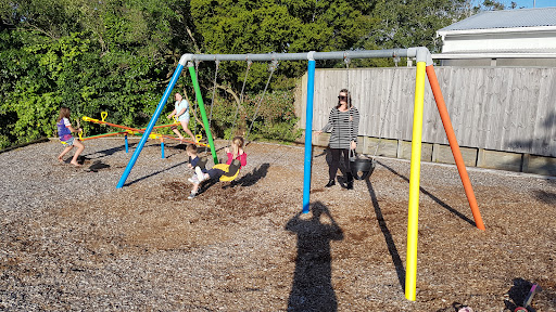 This playground offers a few swings and seesaws for children to enjoy. A patch of grass provides open space for other activities. It’s a functional park for a quick visit.
