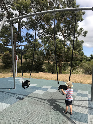 This playground offers a variety of fun activities for children, including a large fort-like tower with a slide and fireman’s pole, a sandpit, and swings. Families can also enjoy the convenience of picnic tables and ample shade trees. A sealed bike track and a flying fox add to the excitement, making it a well-equipped spot for a family outing.
