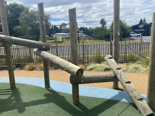 Te Kapua Park Playground is a beautifully designed space that offers a natural and engaging environment for children. The playground features unique elements like wooden logs with carved steps, providing a fun climbing experience, alongside delightful water play features such as a mini river with dams and spray poles. It’s noted as a great place for kids, with sections catering to different age groups, making it an enjoyable destination for families.