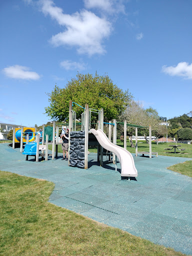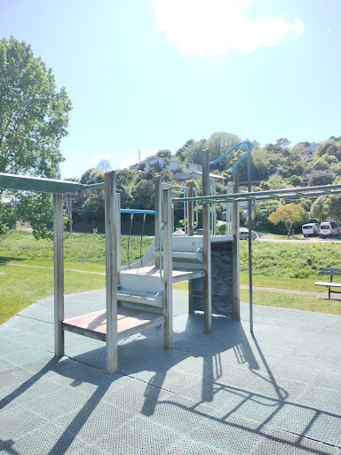 Thomas St Playground is a cute and fun local park featuring swings and a pump track perfect for bikes and scooters. It boasts a netball hoop and two picnic tables, along with a lovely big grass area ideal for kicking balls and running around. The playground is particularly enjoyed by children aged 5-10 for its engaging equipment and open spaces.