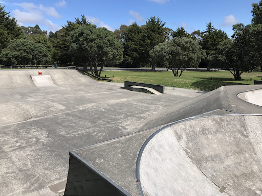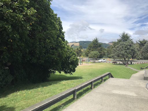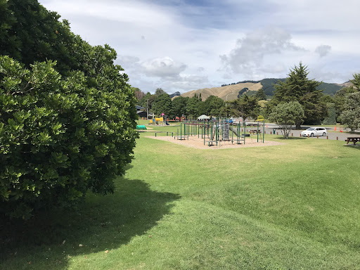 Waikanae Park Playground is a beautifully tidy and well-kept park that offers a great open space for families. It caters to all ages and stages with a good selection of playground equipment, a skate park, and a pump track. The park also features ample parking, seating under shady trees, and a drinking fountain, making it a pleasant and convenient spot for a family outing, especially with the added bonus of a Saturday market.