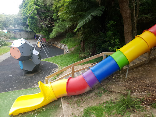 Nestled in a beautiful, natural setting, Khandallah Park Childrens Playground is a charming spot for families to enjoy. It features a variety of equipment including a colorful slide, swings, a seesaw, and a flying fox, providing ample entertainment for children. The playground is well-maintained, offers plenty of shade, and is surrounded by great walking paths, making it an ideal place for outdoor fun.