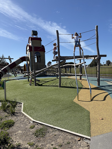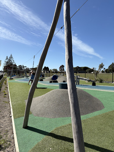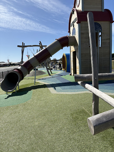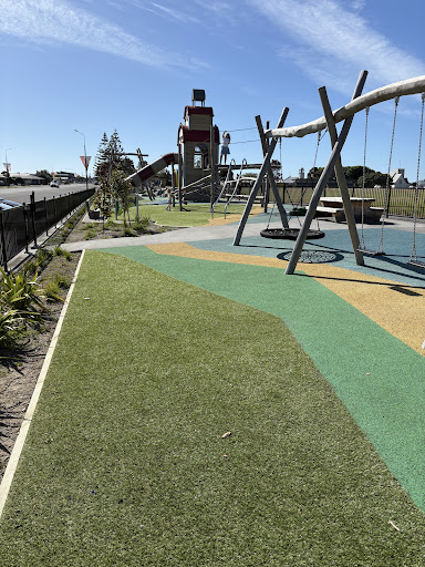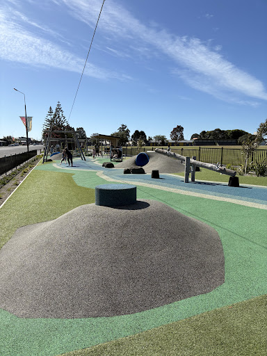This well-equipped playground offers a secure and enjoyable experience for children, featuring swings, a flying fox, see-saw, and slides. It’s conveniently located with ample parking, nearby restrooms, and picnic tables, making it an ideal family stop. The adjacent skate park also adds an extra element of fun.