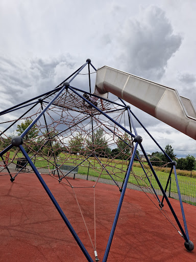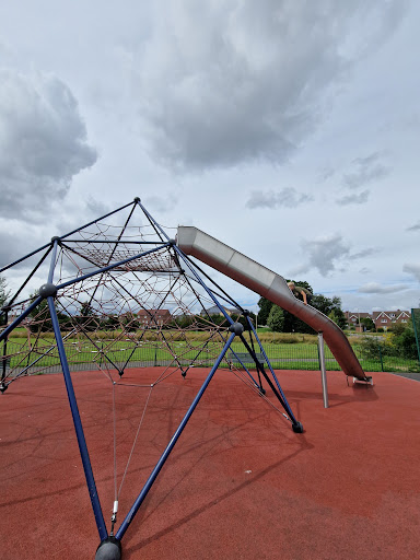Pilgrims Playground offers expansive open fields that are ideal for children and dogs to play and explore. The area includes a nice enclosed football pitch, providing ample space for sports and running around. While the playground itself has potential, it features a good slide and a rope climbing element.