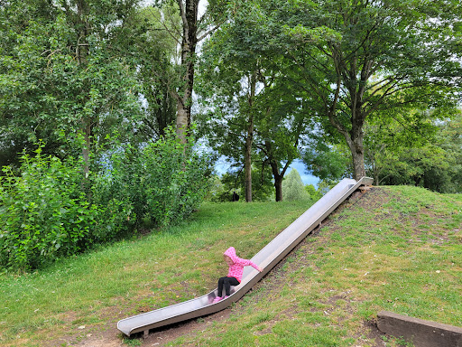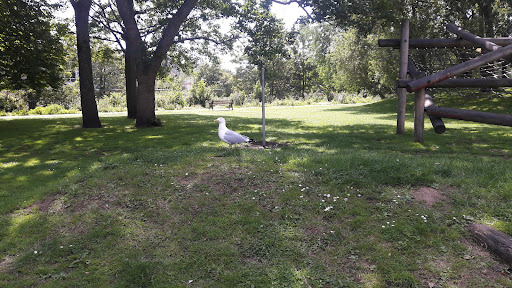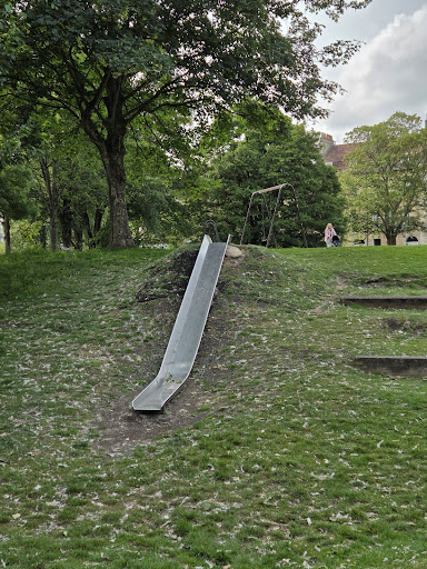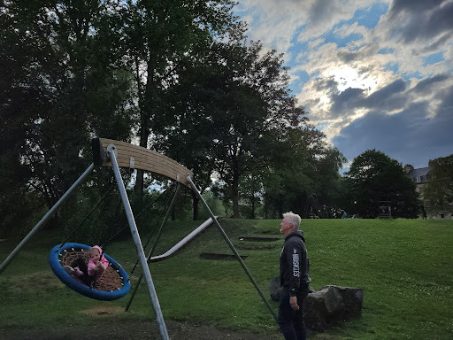 Green Park playground is situated in a beautiful and spacious green area, offering direct access to a canal walk, making it an attractive spot for leisurely strolls and relaxation. The playground includes slides and rockers that are noted to be in decent repair, and the park generally provides a clean and pleasant environment for visitors.
