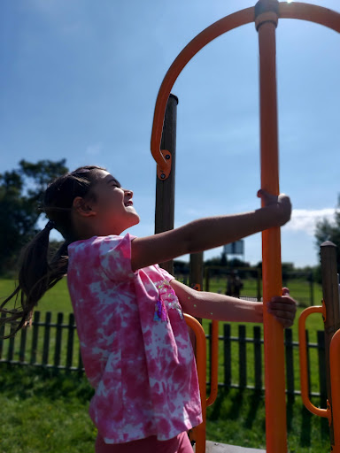 Darby Park Play Area is a large, enjoyable space for families, featuring a variety of play equipment such as a massive slide down a hill, swings, a zipline, and a climbing structure. It includes a safely fenced-off toddler park, a basketball hoop, and football goal posts, catering to different interests and age groups. The park is surrounded by large trees, offering a pleasant environment for children to play and burn energy.