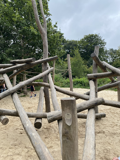 Lanhydrock Play Area is a brilliant adventure park featuring a lovely wooden playground with a tall slide, a small slide, a large round rope net swing, and plenty of climbing and balance apparatus. It’s situated in a sheltered woodland area, providing a delightful experience for children aged 5 and 9, who found it very enjoyable.