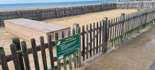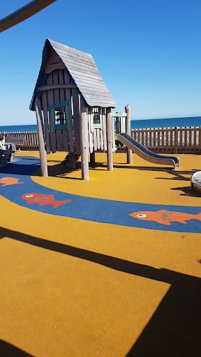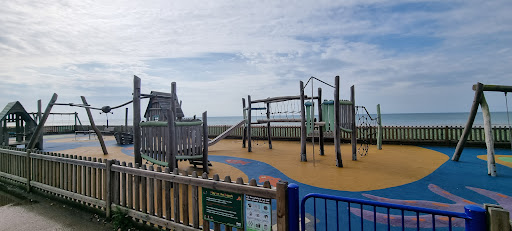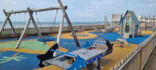 This playground is ideally situated right on the sea front, offering a delightful experience for children. It features a large sandpit, perfect for imaginative play, and uniquely themed equipment, including a pirate ship, which kids absolutely love. The entire play area is enclosed, providing a secure environment for children to explore and play freely, making it a great spot for families.