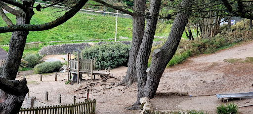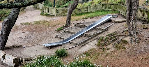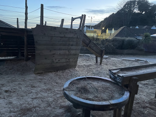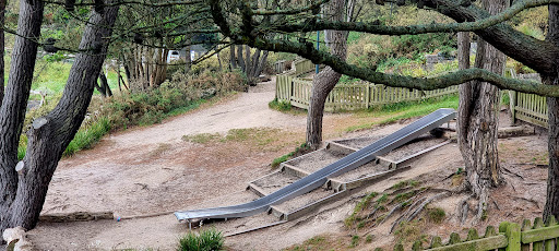 Alum Chine Play Park is a charming playground situated directly beside the beach, offering beautiful sea views and a relaxed environment perfect for young families. The park features include a slide, swings, and a unique Crusoe-inspired design with elements like a hammock and a gopher hole entrance. Its proximity to cafes and convenient parking makes it an appealing stop for children to play while parents can enjoy the seaside setting.