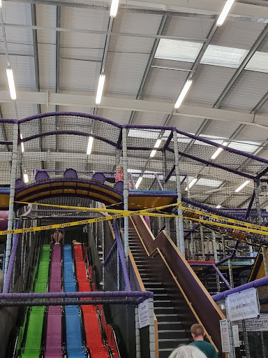 CurveMotion offers a large and engaging indoor play environment with distinct areas for toddlers, younger children, and older kids, featuring ball cannons, large and small slides, nets, ramps, steps, and tunnels. It also includes a roller skating rink with music and lighting effects. The venue is noted for its clean facilities, friendly and helpful staff, and decent food and drink selection, making it a great place for children to play and burn energy.