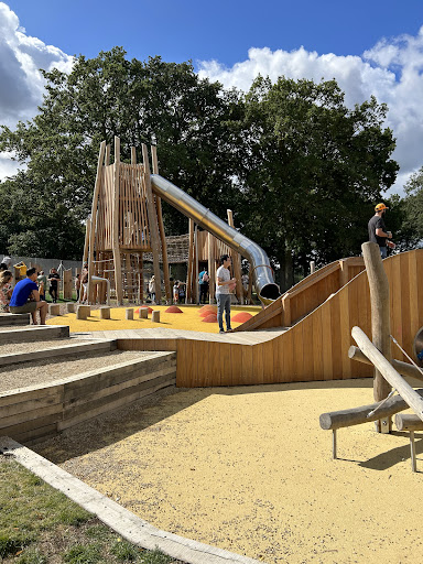This adventure play area is situated within a beautiful forest, offering a serene environment with plenty of shade from trees. Visitors can enjoy nearby attractions like an animal farm and a scenic train ride, making it a lovely spot for families. Pack a picnic to fully enjoy the open grassy spaces and pleasant surroundings.