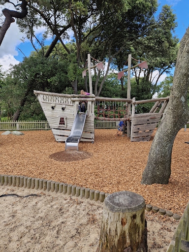 Mudeford Quay Playground is a charming and well-maintained play area that stands out with its natural wooden play equipment, including a prominent pirate ship-themed climbing structure. The playground is praised for its cleanliness and offers a delightful setting with great views. Its convenient location near parking and the beach makes it an easily accessible and enjoyable spot for families looking for outdoor fun.