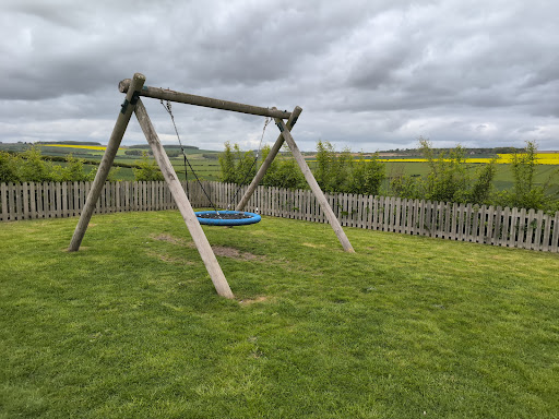 This is a lovely little community playground ideal for younger children, particularly those under 8, with a good range of smaller equipment. It is praised for being very well kept, offering a peaceful atmosphere, and providing superb views.