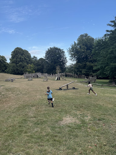 Farnham Park Play Area offers a fantastic and unique experience with its awesome wooden medieval-themed playground. It provides a variety of engaging structures for children of all ages, including a long zip line, a large wooden castle, and other climbing and playing elements. The park is a great place for picnics, with benches and picnic tables available, and offers a lovely safe play area within a pretty location.