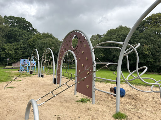 This is a wonderfully maintained playground that offers something for children of all ages. It features a large slide, toddler and older swings, and various climbing frame equipment, with the zipline being a major highlight. The park is very secure, with a gate and fencing at the entrance, and also enforces a no-dogs rule, which is appreciated by many visitors.