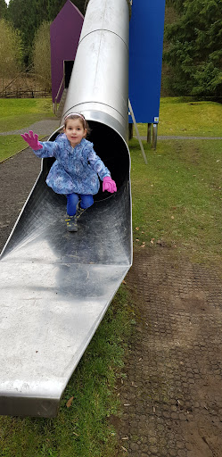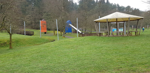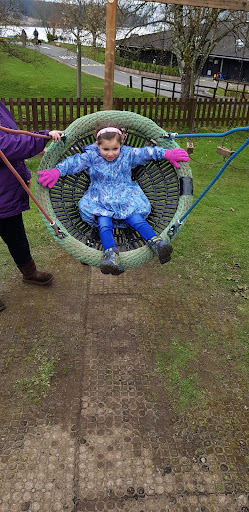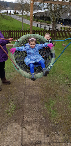 This playground offers a delightful experience for children with a large slide, swings, and an obstacle course. It’s a great addition for keeping kids entertained and active. The nearby stream adds to the natural charm of the location.