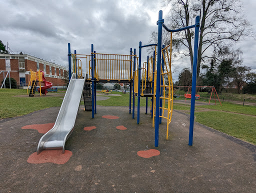 Lawnside Play Park, also known as ‘The Rec’, is a spacious and well-equipped recreational ground featuring multiple play areas for children of various ages. It boasts a good selection of equipment like slides, swings, a climbing structure, and a skate park. The park also offers open fields for football, basketball courts, and walking paths, making it a versatile destination for family activities and exercise.