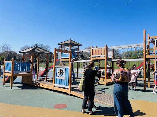 Parliament Hill Playground and Paddling Pool is a fantastic destination for families, offering a huge splash park and an adjacent playground with various activities like climbing frames, swings, and slides. It provides a safe and enjoyable environment with amenities such as toilets, picnic lawns, and nearby food vendors, making it an ideal spot for children to play and cool off.