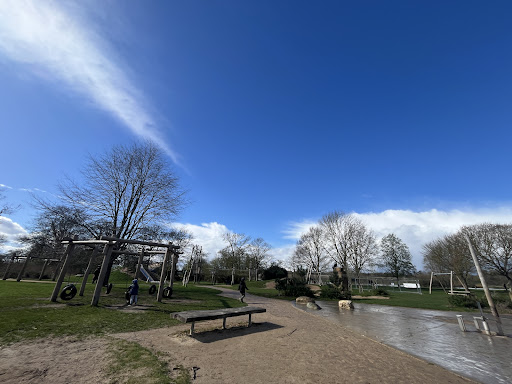 Fox Playground at Lakeside is a highly-rated large play park set in a beautiful location. Visitors appreciate the summer water fountain, the scenic surroundings perfect for walking and biking, and the ample space for picnics. It’s a spot where children can happily play while parents can relax and supervise.