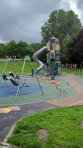 This playground has been significantly refurbished, offering a well-equipped and enjoyable experience for children of all ages. The park features a variety of climbing structures and a zip line, ensuring plenty of active play. Its fully fenced design provides a safe environment for younger children, and the presence of a nearby lake walk adds to the overall appeal for families.