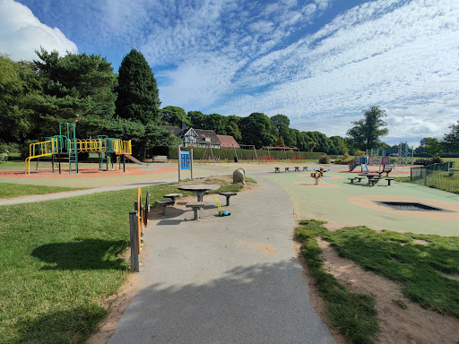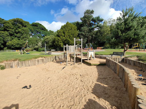 Graves Park Rose Garden Playground offers a diverse range of attractions for children, featuring a sand play area, numerous swings, a zipline, and climbing frames. It is well-equipped with benches and picnic tables, and located conveniently next to a cafe and near ponds with ducks. The sunny spot is popular with families looking for a well-maintained and engaging play environment.