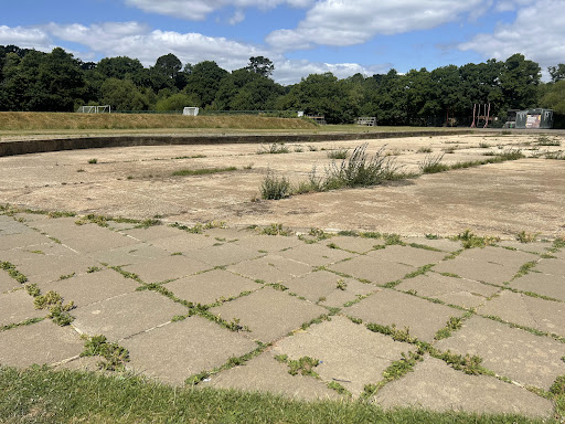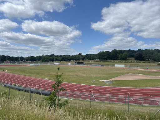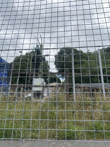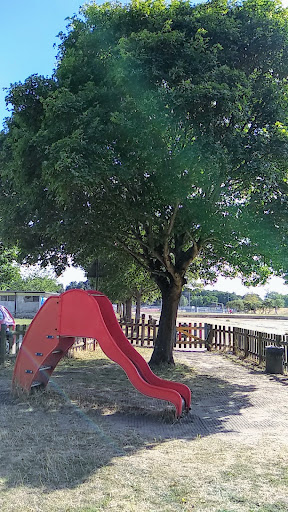 Sports Centre Playarea offers a serene and family-friendly environment with shaded seating and a fenced play area that includes swings, climbing structures, and slides. It’s a good spot for younger children, set against a backdrop of a large grassy field and near woodland trails. The nostalgic, family-run feel adds to its charm.