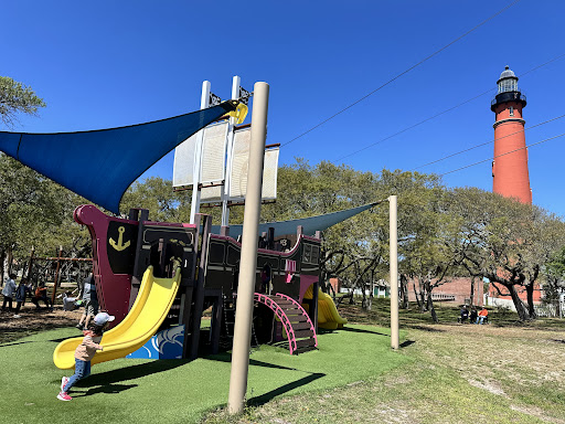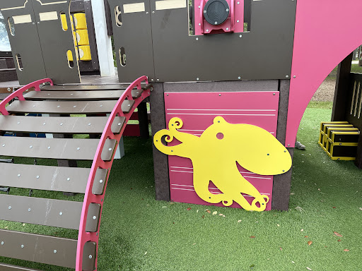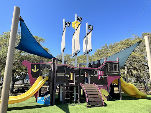 The Pirate Ship Playground is a delightful and well-maintained park featuring a fun pirate ship structure, perfect for young children. Visitors appreciate its cleanliness, the availability of numerous picnic tables and benches, and the natural shade provided by old oak and pine trees, making it an excellent spot for family picnics.