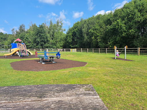 Bytheway Playground is a well-regarded play area featuring a safe, fenced environment with rubber flooring, providing a secure space for children of all ages and abilities to play. The park offers a good variety of equipment and is surrounded by trees, contributing to a peaceful atmosphere. It is conveniently located next to a large field perfect for dog walking and a small pond, enhancing the overall visitor experience.