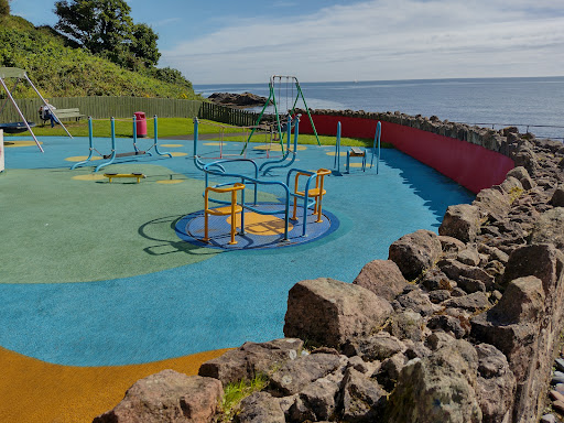 This playground is a bright and colorful play area situated by the beach, making it a lovely stop for small children. Its convenient location near parking and a beach walk is also appreciated by visitors.